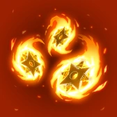 "This Jutsu shoots out Fire Style chakra-laced Shuriken in a radial pattern. Lowers attack power as well as deals damage."